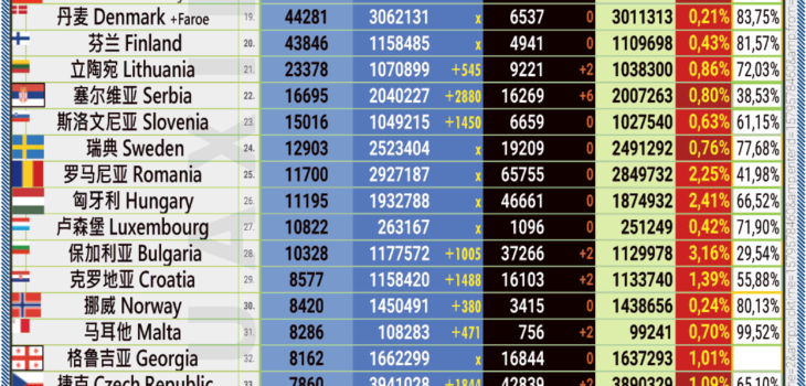 09.07.2022: COVID-19 新型冠状欧洲疫情表。