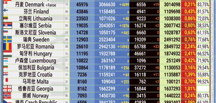 11.07.2022: COVID-19 新型冠状欧洲疫情表。
