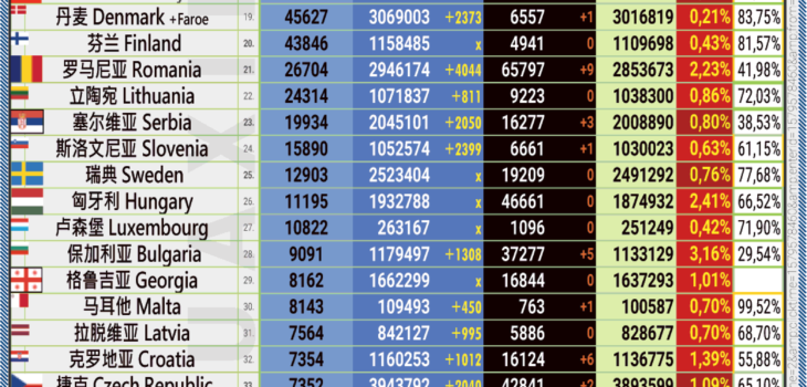 12.07.2022: COVID-19 新型冠状欧洲疫情表。