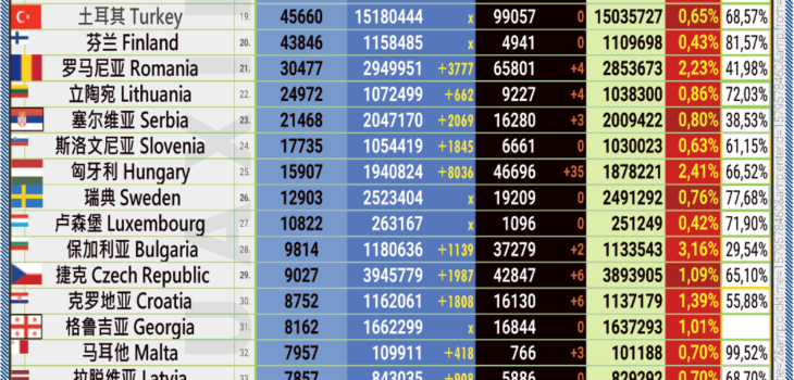 13.07.2022: COVID-19 新型冠状欧洲疫情表。