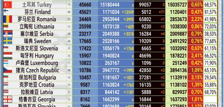 14.07.2022: COVID-19 新型冠状欧洲疫情表。