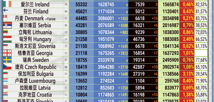 22.07.2022: COVID-19 新型冠状欧洲疫情表。