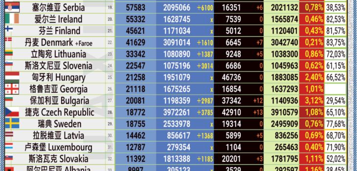 26.07.2022: COVID-19 新型冠状欧洲疫情表。