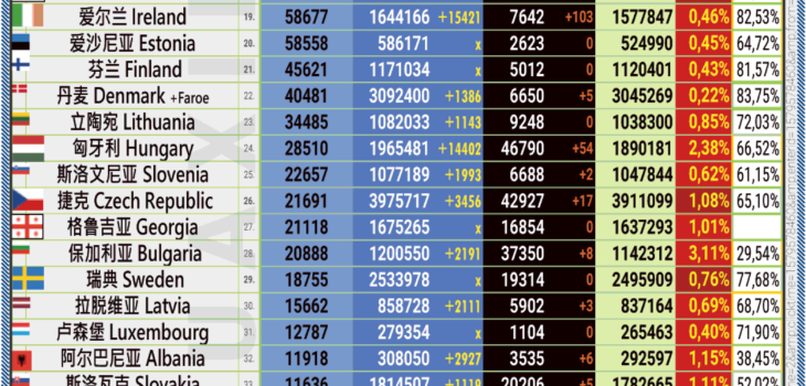 27.07.2022: COVID-19 新型冠状欧洲疫情表。