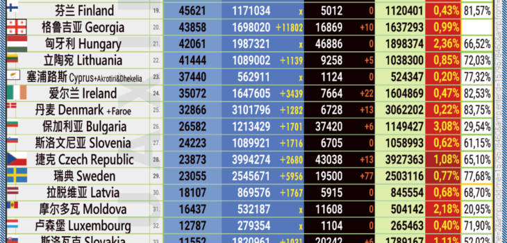 04.08.2022: COVID-19 新型冠状欧洲疫情表。