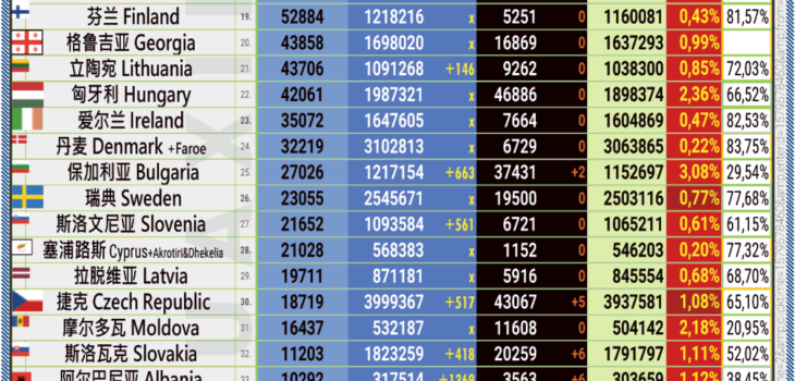 07.08.2022: COVID-19 新型冠状欧洲疫情表。