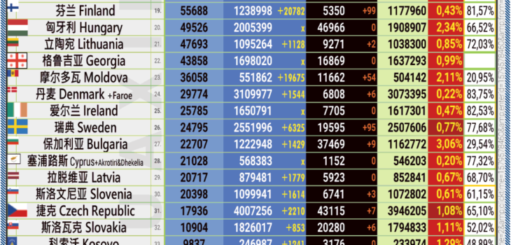 11.08.2022: COVID-19 新型冠状欧洲疫情表。