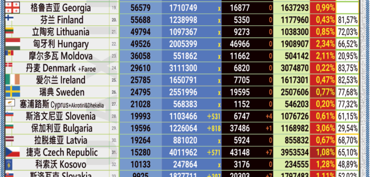14.08.2022: COVID-19 新型冠状欧洲疫情表。