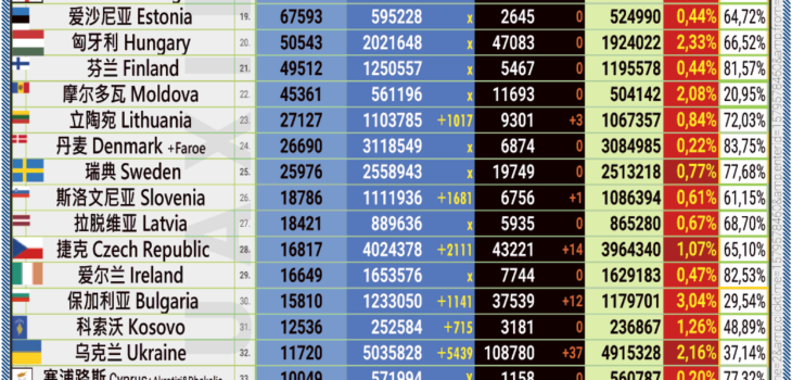 20.08.2022: COVID-19 新型冠状欧洲疫情表。