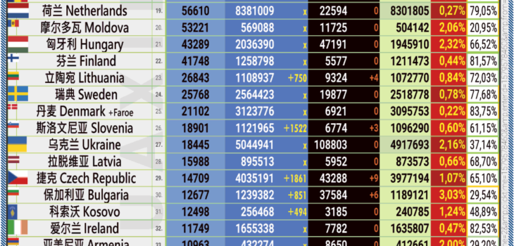 27.08.2022: COVID-19 新型冠状欧洲疫情表。