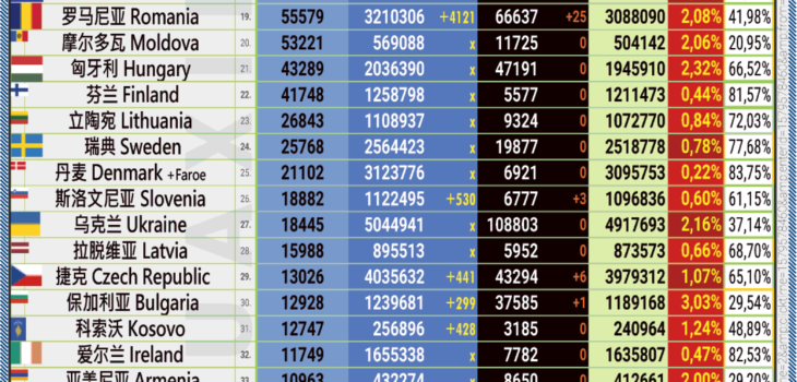 Uncategorised 28.08.2022: COVID-19 新型冠状欧洲疫情表。 28th August 202228th August 2022 by Huaxin Admin 7 40 SHARES 在脸书分享 • Share on Facebook 推特 • Tweet 电子邮件关注 • Follow us Please leave this field empty .: 在这里您可以订阅我们的电子邮件通知。当我们网站上发表新文章时,您将收到一封电子邮件。:. | | .: Here you can subscripe to our email notifications. When a new article is published on our website, you will receive an email. :. .: 订阅是免费的。 所有数据将按照DSGVO进行保存。:. | :: The subscription is free of charge. All data will be saved compliant to DSGVO. :: 电子邮件 | Email Address * We don’t spam! Read our [link]privacy policy[/link] for more info. You’ve been successfully subscribed to our newsletter! 27.08.2022: COVID-19 新型冠状欧洲疫情表。 29.08.2022: COVID-19 新型冠状欧洲疫情表。 Huaxin Admin 28.08.2022: COVID-19 新型冠状欧洲疫情表。 Related articles 23.05.2023: COVID-19 新型冠状欧洲疫情表05.05.2023: COVID-19 新型冠状欧洲疫情表22.04.2023: COVID-19 新型冠状欧洲疫情表11.04.2023: COVID-19 新型冠状欧洲疫情表02.04.2023: COVID-19 新型冠状欧洲疫情表01.04.2023: COVID-19 新型冠状欧洲疫情表30.03.2023: COVID-19 新型冠状欧洲疫情表29.03.2023: COVID-19 新型冠状欧洲疫情表28.03.2023: COVID-19 新型冠状欧洲疫情表26.03.2023: COVID-19 新型冠状欧洲疫情表25.03.2023: COVID-19 新型冠状欧洲疫情表24.03.2023: COVID-19 新型冠状欧洲疫情表