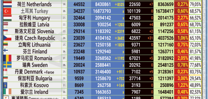30.09.2022: COVID-19 新型冠状欧洲疫情表。