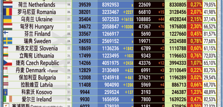 07.09.2022: COVID-19 新型冠状欧洲疫情表。
