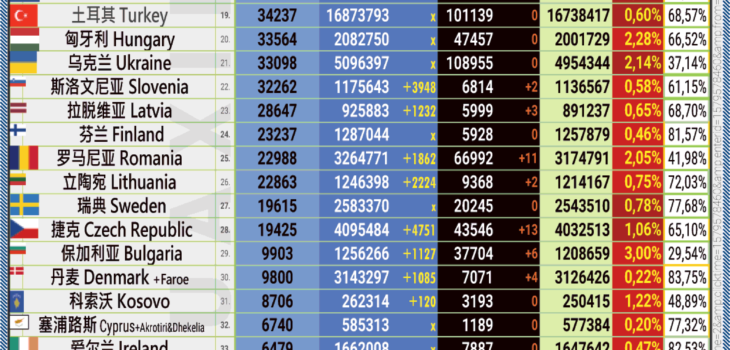 27.09.2022: COVID-19 新型冠状欧洲疫情表。