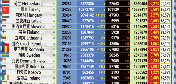 28.09.2022: COVID-19 新型冠状欧洲疫情表。