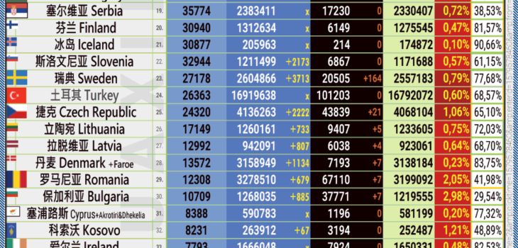 13.10.2022: COVID-19 新型冠状欧洲疫情表。
