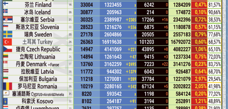 17.10.2022: COVID-19 新型冠状欧洲疫情表。
