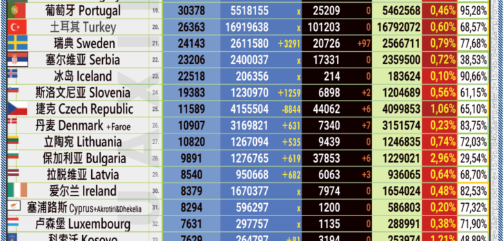 27.10.2022: COVID-19 新型冠状欧洲疫情表