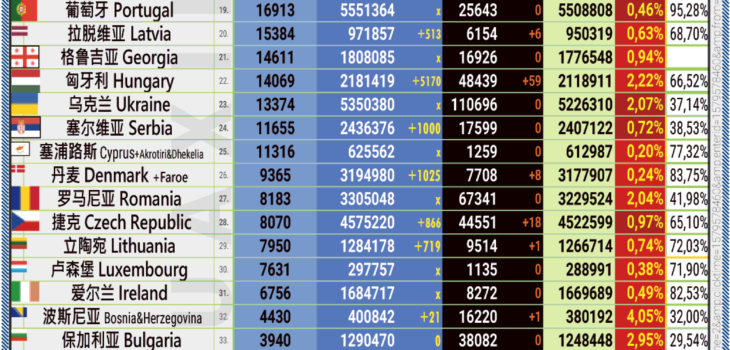 21.12.2022: COVID-19 新型冠状欧洲疫情表