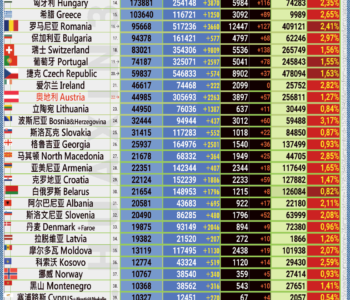 12月10日: 土耳其政府一直以来都在隐瞒新冠大流行在该国的真实规模。无症状病例没有得到统计与报告。现在,在世卫组织的压力下,该国终于公布了 “实际数字”。今天,一口气就增加了八十二多万新感染病例,疫情在土耳其长期看起来似乎一直都很稳定,每天新感染都在 2000 例左右,尤其是与欧洲其他国家相比。现在土耳其的总感染人数为 175万,在欧洲排名第四。然而死亡统计数字似乎也不正确,因为现在的死亡率仅为 0.90%,这很难想象。而且死亡人数每天都在 200 例左右,它也不符合每天的新感染数字的比例。土耳其在这方面看来还在作弊。