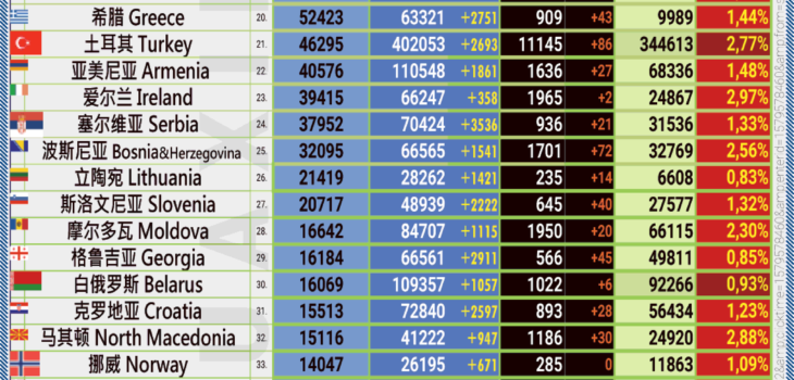 在过去的24小时内,总共进行了 29 810 次测试, 超过 8 200 个阳性结果,阳性率约为28%。自大流行开始以来,到目前为止在奥地利进行的新冠测试数量已增加到 2 425 825 次。 到目前为止,有 147 220 人被检测出 COVID-19 呈阳性,其中 88 273 人被认为已康复。