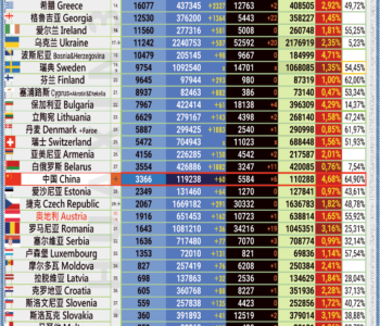 16.07.2021: COVID-19 新型冠状欧洲疫情表。