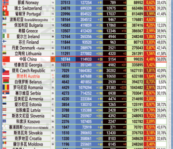 15.06.2021: COVID-19 新型冠状欧洲疫情表。
