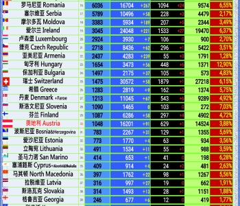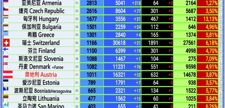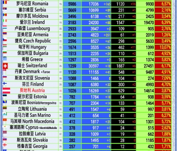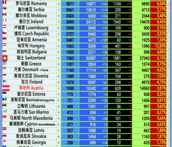 19.05.2020: COVID-19 新型冠状欧洲疫情表。